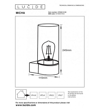 Бра Lucide MICHA 27838/01/30 40Вт E27