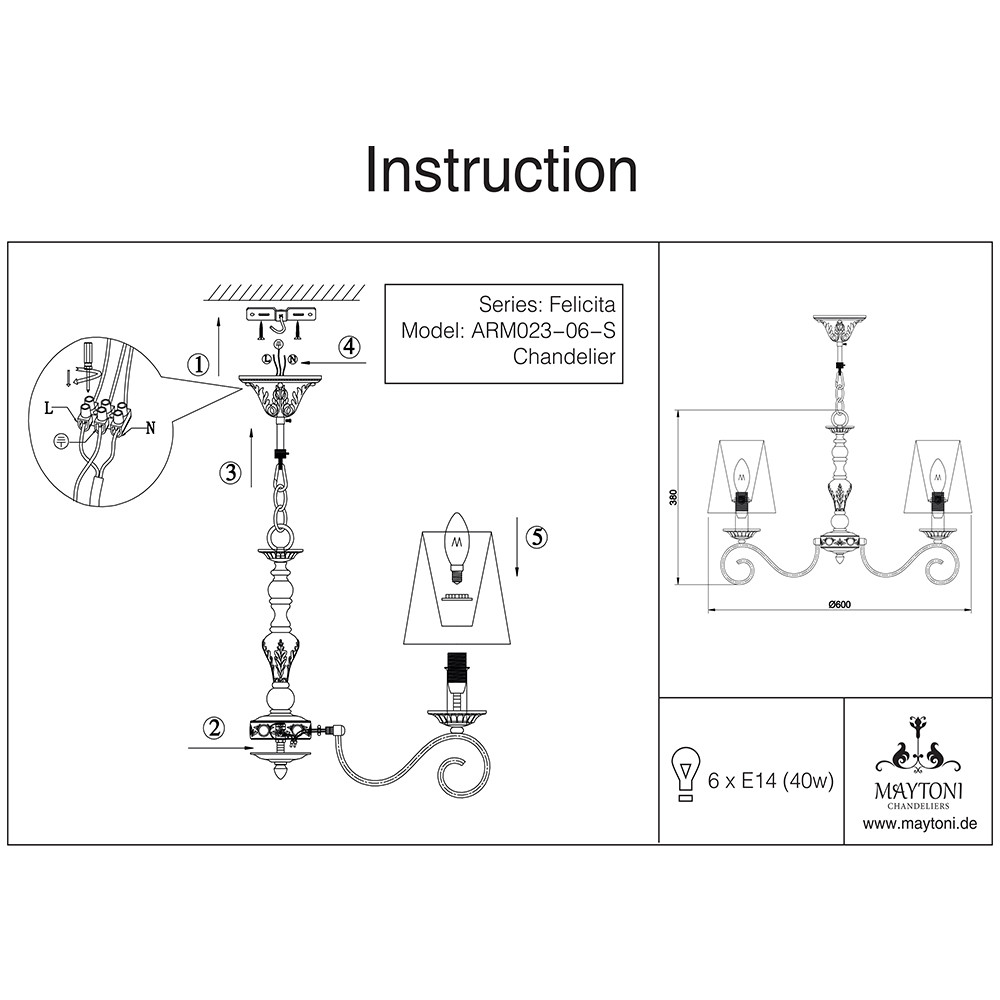 Люстра подвесная Maytoni Bouquet ARM023-06-S 40Вт 6 лампочек E14 - купить в интернет-магазине Орегон с доставкой в регионы Крыма.