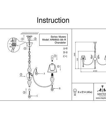 Люстра подвесная Maytoni Murano RC855-PL-08-R 40Вт 8 лампочек E14 - купить в интернет-магазине Орегон с доставкой в регионы Крыма.