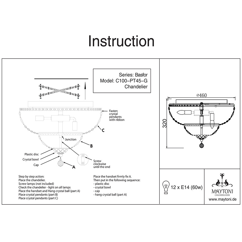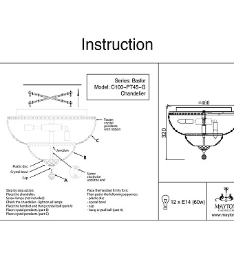 Люстра потолочная Maytoni Basfor DIA100-CL-12-G 720Вт 12 лампочек E14 - купить в интернет-магазине Орегон с доставкой в регионы Крыма.