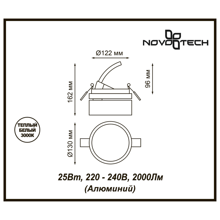 Спот встраиваемый Novotech SPOT 357875 25Вт LED