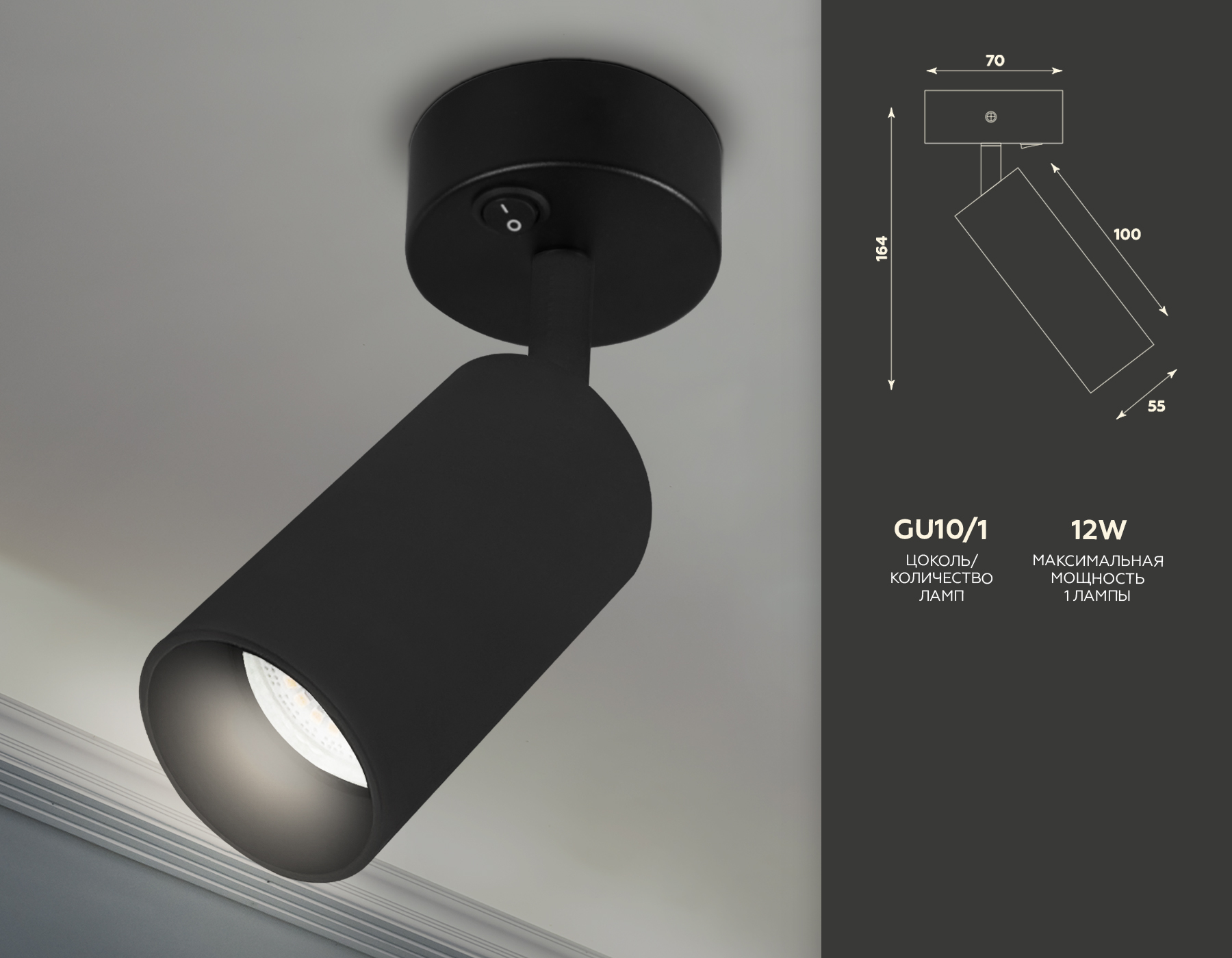 Светильник настенно-потолочный Ambrella TECHNO SPOT Move TA127 12Вт GU10 - купить в интернет-магазине Орегон с доставкой в регионы Крыма.