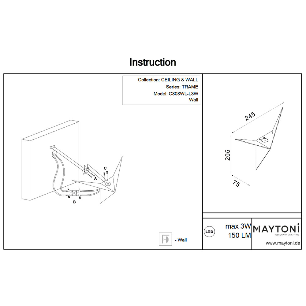 Светильник настенный Maytoni Trame C808WL-L3W 3,4Вт LED - купить в интернет-магазине Орегон с доставкой в регионы Крыма.