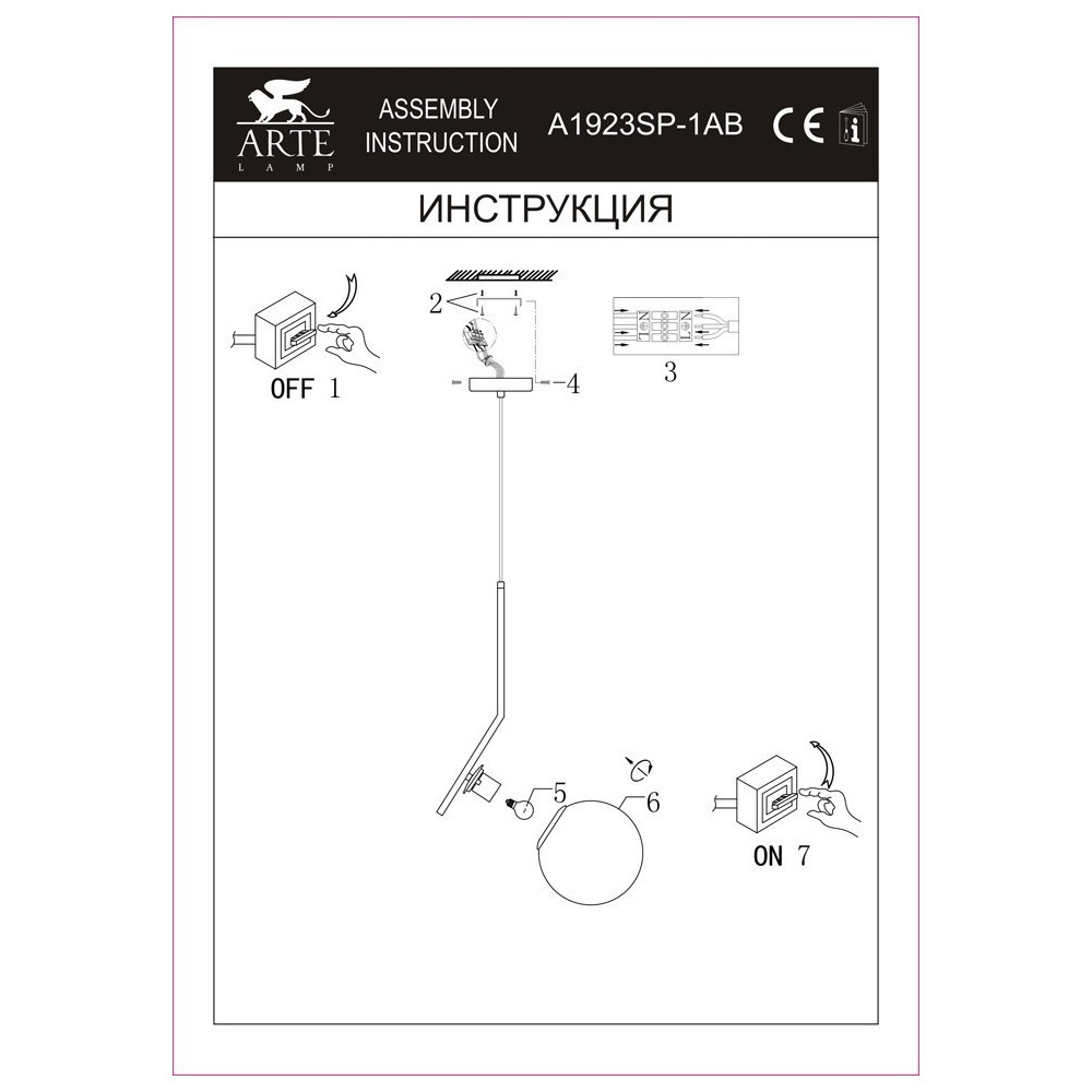 Светильник подвесной Arte Lamp Bolla-unica A1923SP-1AB 60Вт E27 - купить в интернет-магазине Орегон с доставкой в регионы Крыма.
