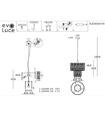 Светильник подвесной Evoluce RIDA SLE283203-05 200Вт E27 - купить в интернет-магазине Орегон с доставкой в регионы Крыма.