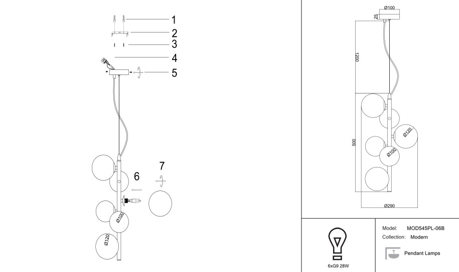 Светильник подвесной Maytoni Dallas MOD545PL-06B 168Вт G9 - купить в интернет-магазине Орегон с доставкой в регионы Крыма.