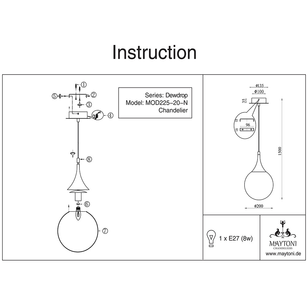 Светильник подвесной Maytoni Dewdrop P225-PL-200-N 8Вт E27