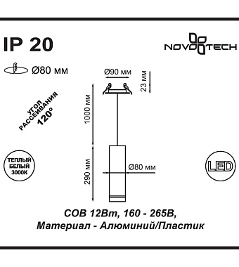 Светильник подвесной Novotech ARUM 357690 12Вт LED