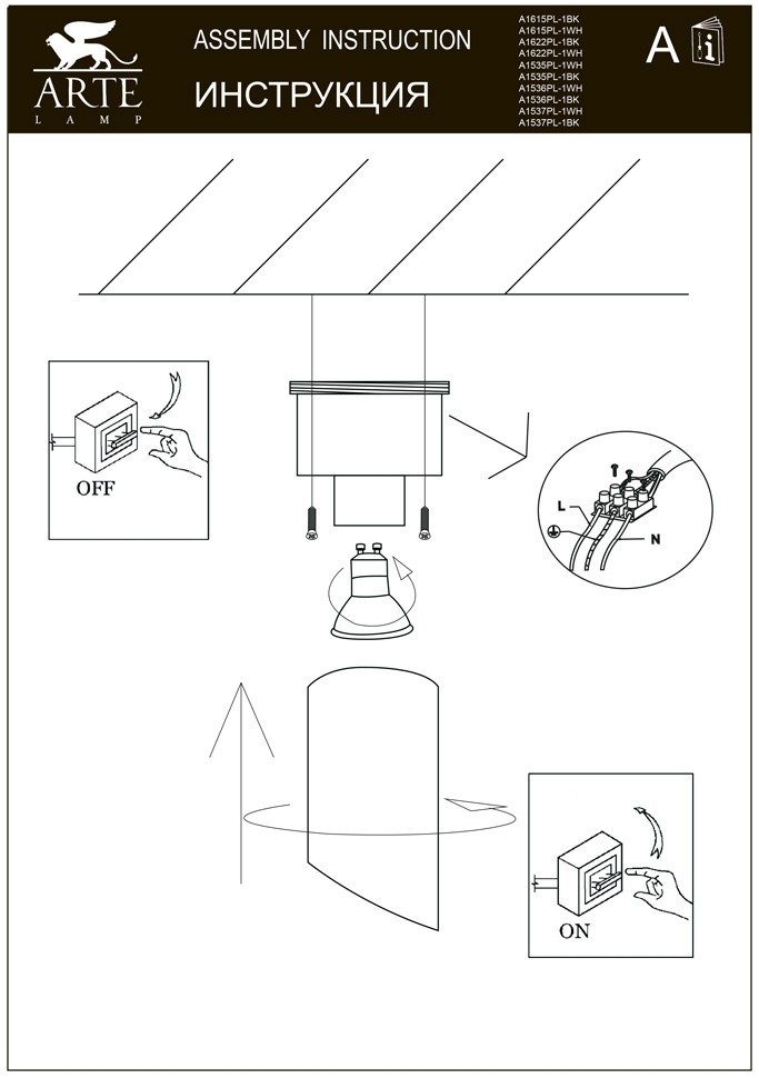 Светильник потолочный Arte Lamp PILON A1615PL-1BK 35Вт GU10 - купить в интернет-магазине Орегон с доставкой в регионы Крыма.