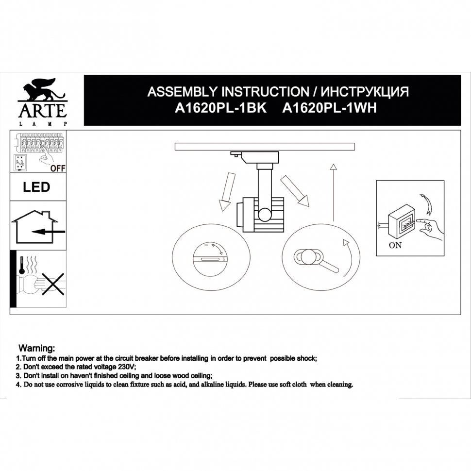 «Трековый светильник Arte Lamp VIGILE A1620PL-1WH 20Вт LED белый для однофазного трека» в Ялте и Крыму