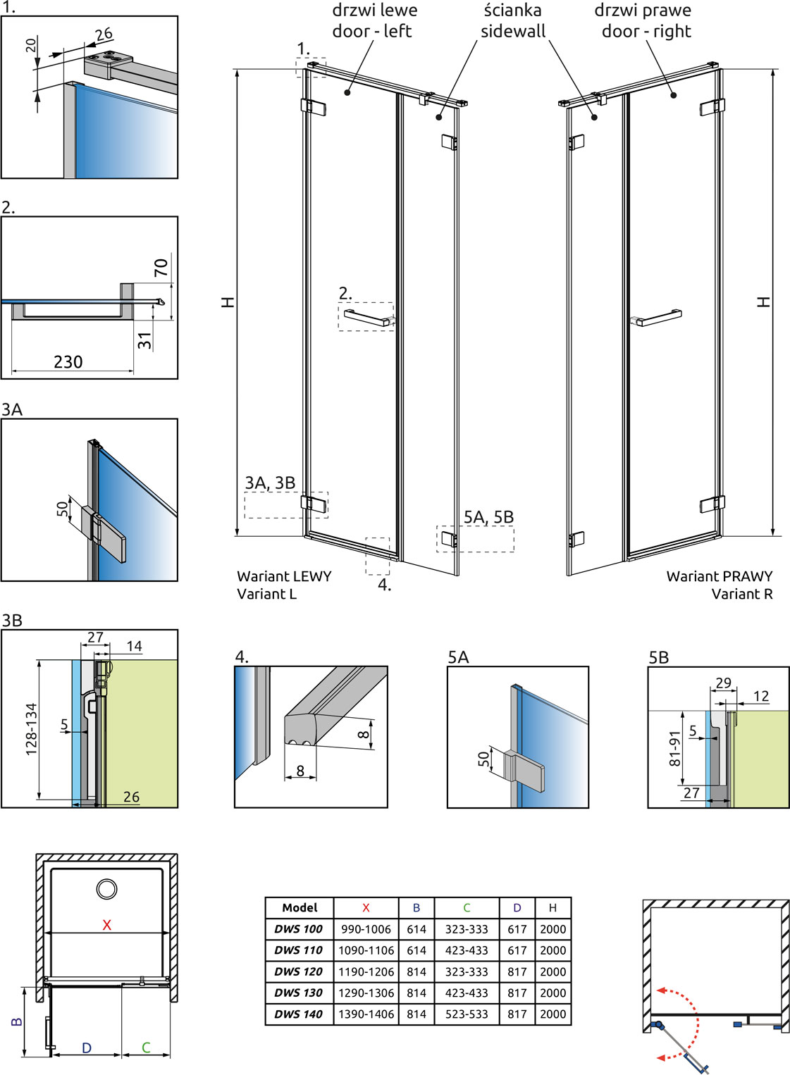 Душевая дверь RADAWAY Arta DWS 200х62,8см стекло прозрачное
