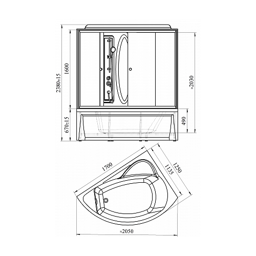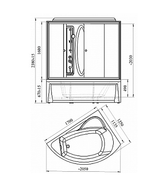 Душевая кабина RADOMIR ВИРСАВИЯ 1-00-1-1-0-0671 170х125х238см стекло матовое - купить в интернет-магазине Орегон с доставкой в регионы Крыма.