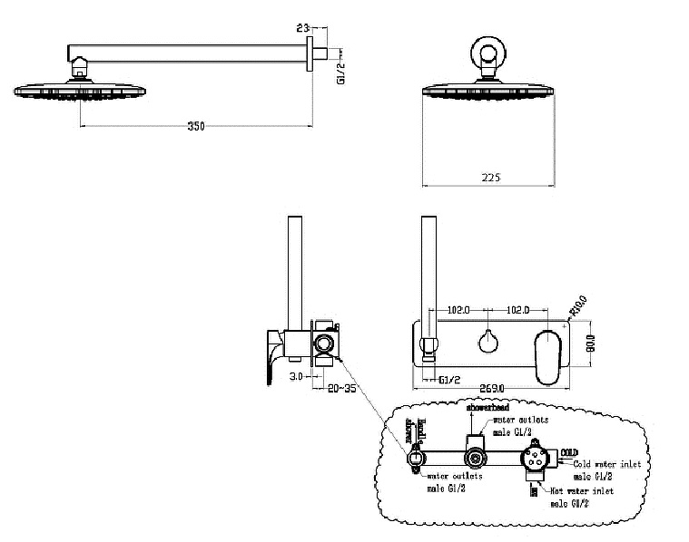 Оснащение (Душ) Верхний душ~Ручной душ~Смеситель