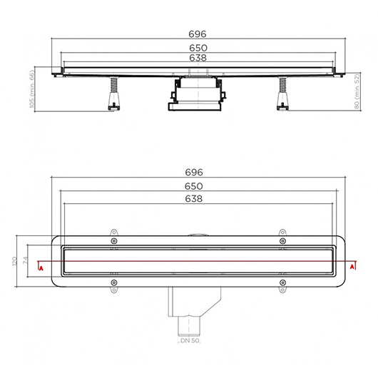 Душевой лоток Pestan 13702517 59,6х12см горизонтальный сток с решёткой и опорами - купить в интернет-магазине Орегон с доставкой в регионы Крыма.
