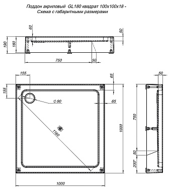 Душевой поддон AQUANET GL180 265562 100х100см - купить в интернет-магазине Орегон с доставкой в регионы Крыма.