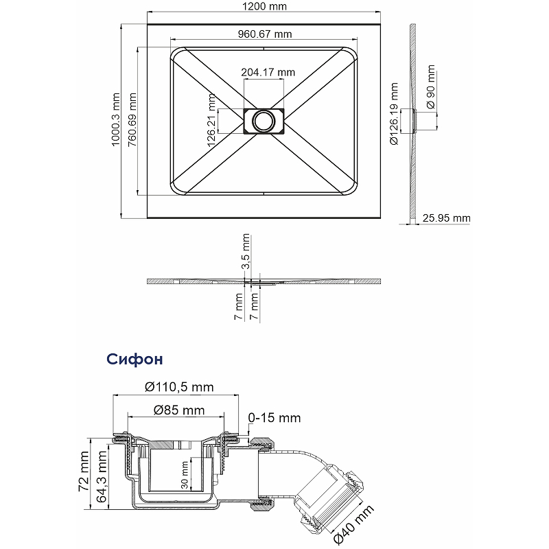 Душевой поддон WASSERKRAFT Elbe 74T10 100х120см - купить в интернет-магазине Орегон с доставкой в регионы Крыма.