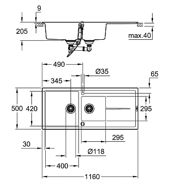 Мойка кухонная GROHE K400 31643AP0 116х50см чёрный матовый - купить в интернет-магазине Орегон с доставкой в регионы Крыма.