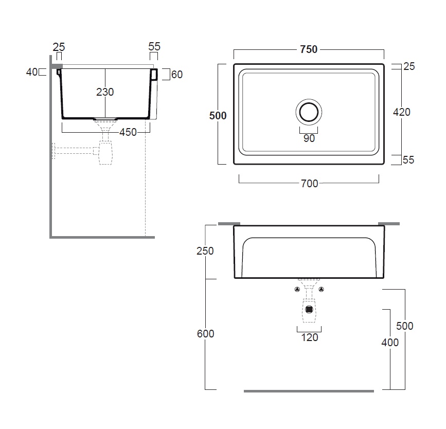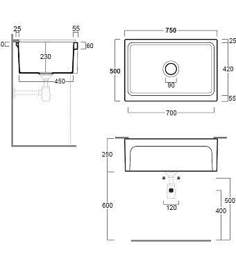Мойка кухонная SIMAS Top E Lavabi D'Arredo Q500bi 75х50см белый - купить в интернет-магазине Орегон с доставкой в регионы Крыма.