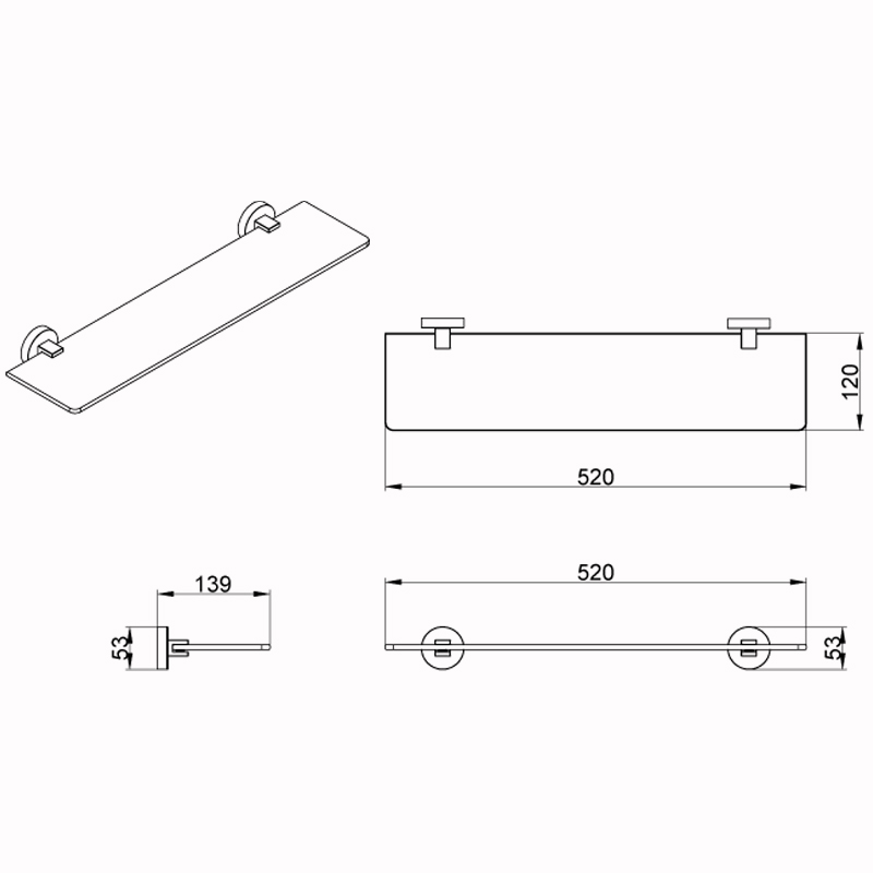 Полка в ванную прямоугольная Azario NESSY AZ-73103 1-ярусная 12х52см хром - купить в интернет-магазине Орегон с доставкой в регионы Крыма.