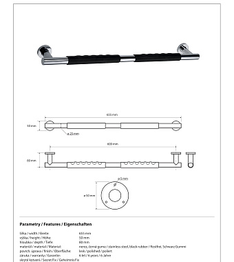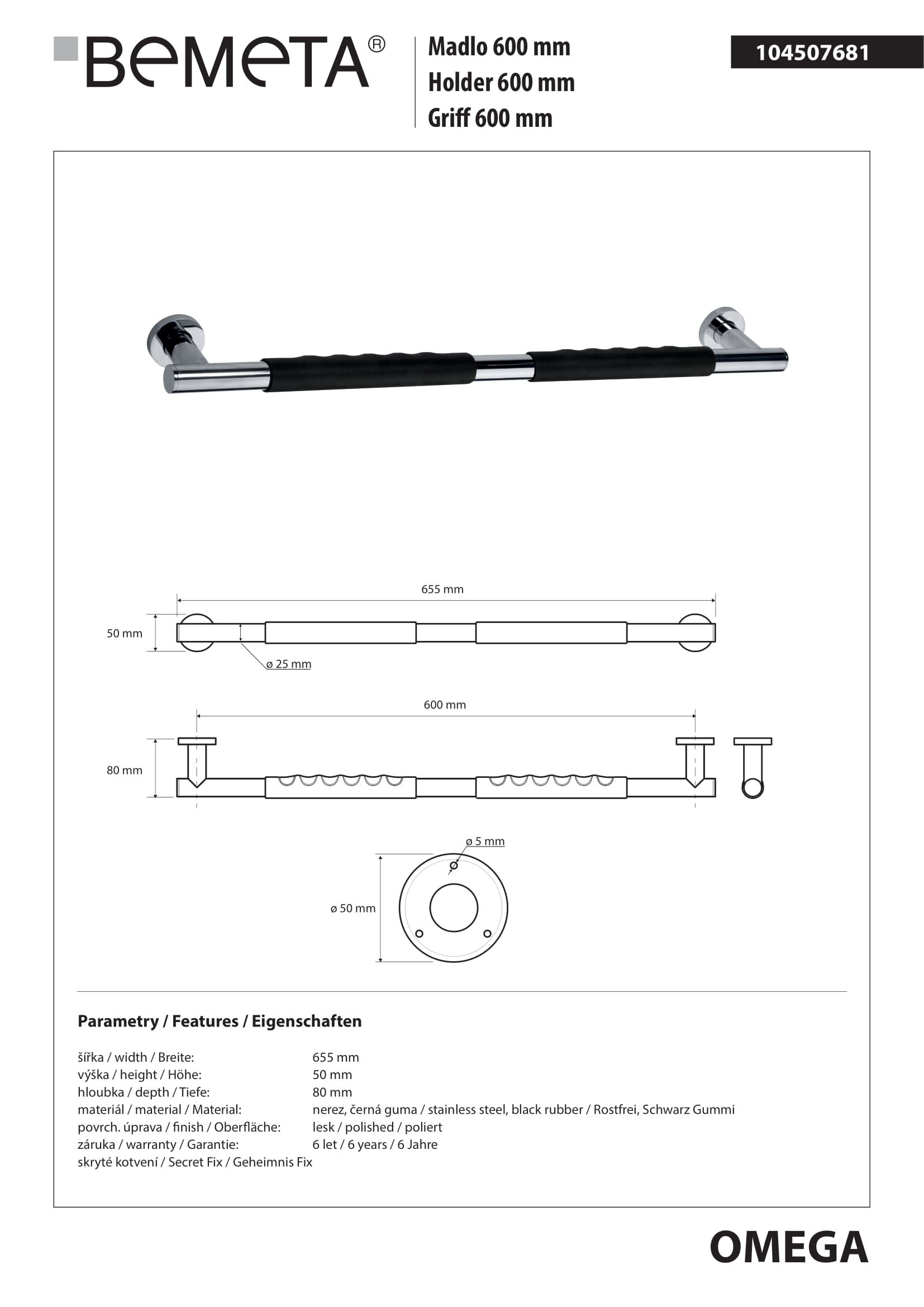 Поручень для ванной BEMETA OMEGA 104507681 8см чёрный