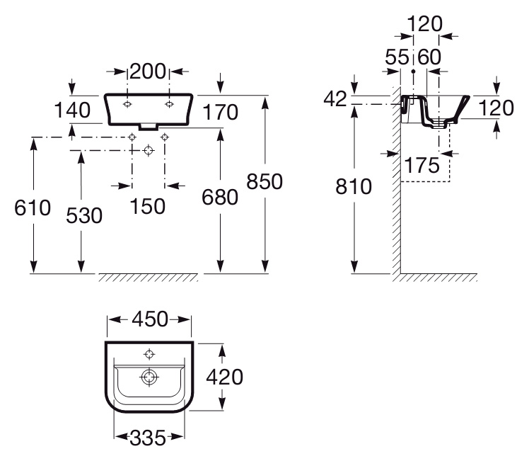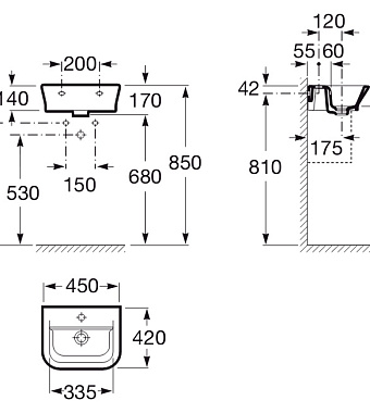 Раковина подвесная ROCA Gap 7.3274.7.700.0 45х42см - купить в интернет-магазине Орегон с доставкой в регионы Крыма.