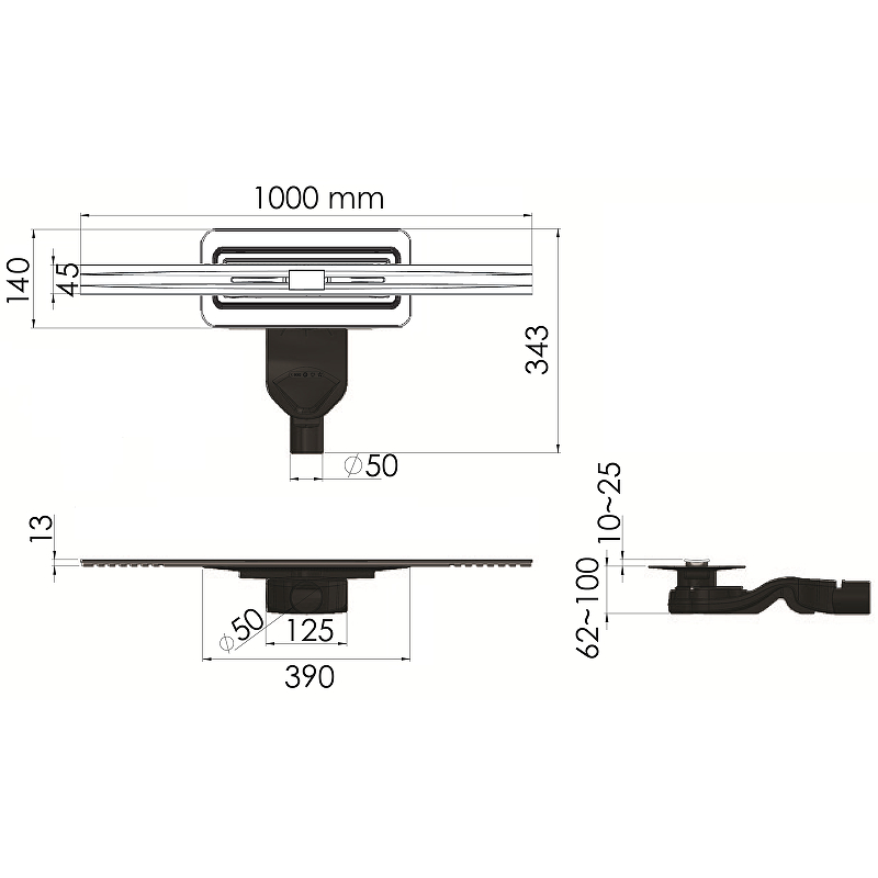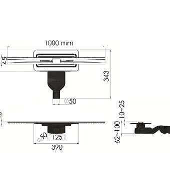 Щелевой душевой трап BERGES SIMPEL 090113 1000 100х31,2см горизонтальный сток