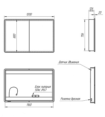 Шкаф зеркальный LEMARK Element LM120ZS-E 15х120х80см с подсветкой - купить в интернет-магазине Орегон с доставкой в регионы Крыма.