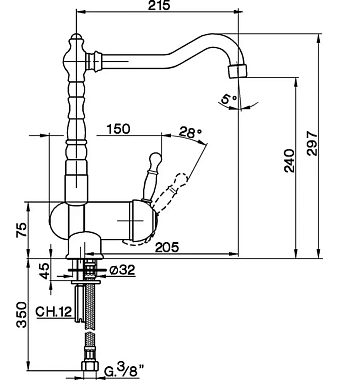 Смеситель для кухни Cisal Arcana Royal AY00153024 высокий излив золото - купить в интернет-магазине Орегон с доставкой в регионы Крыма.