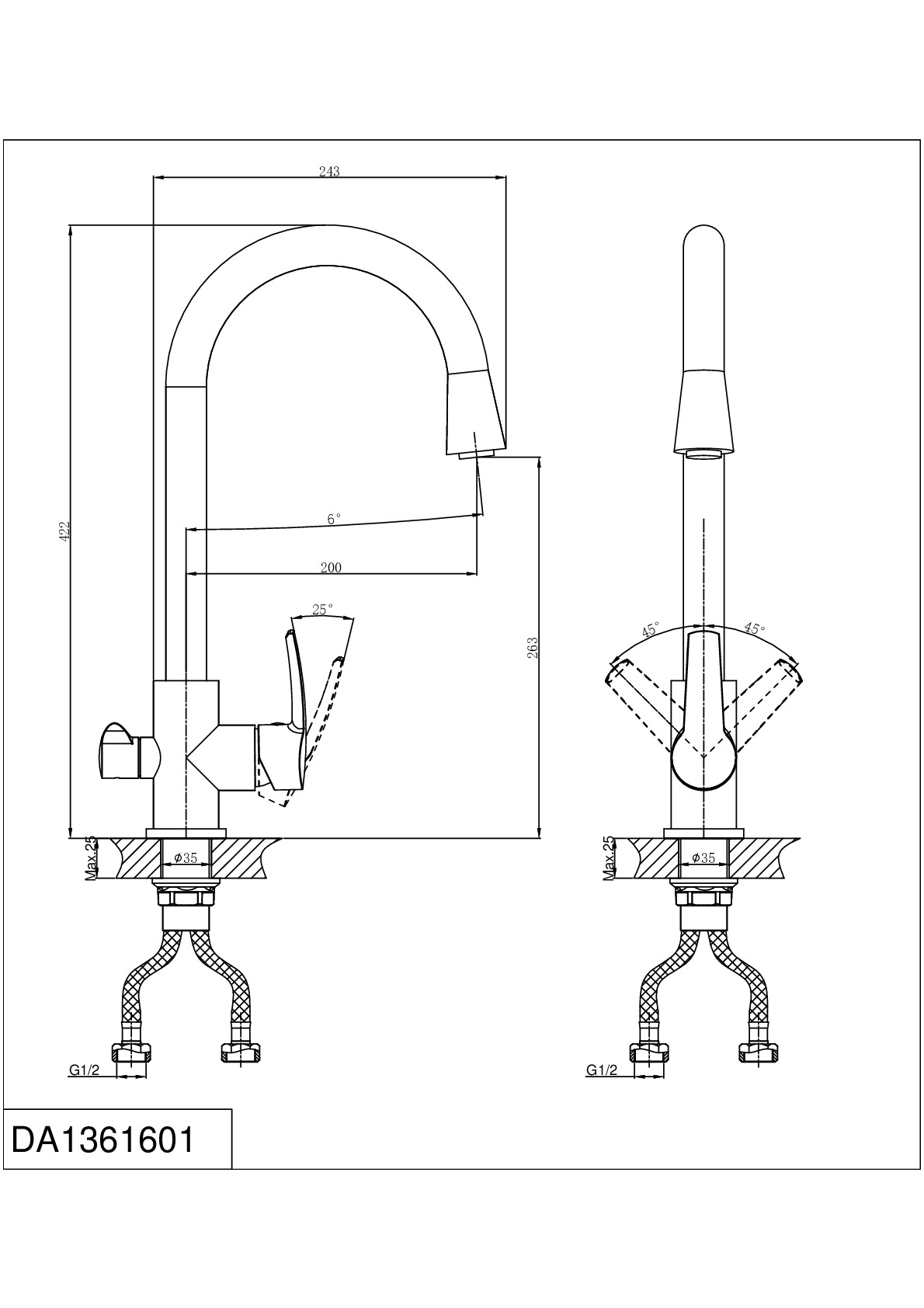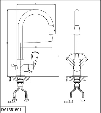 Смеситель для кухни D&K Rhein.Valerius DA1361601 высокий излив хром - купить в интернет-магазине Орегон с доставкой в регионы Крыма.