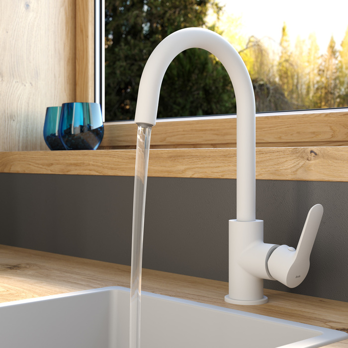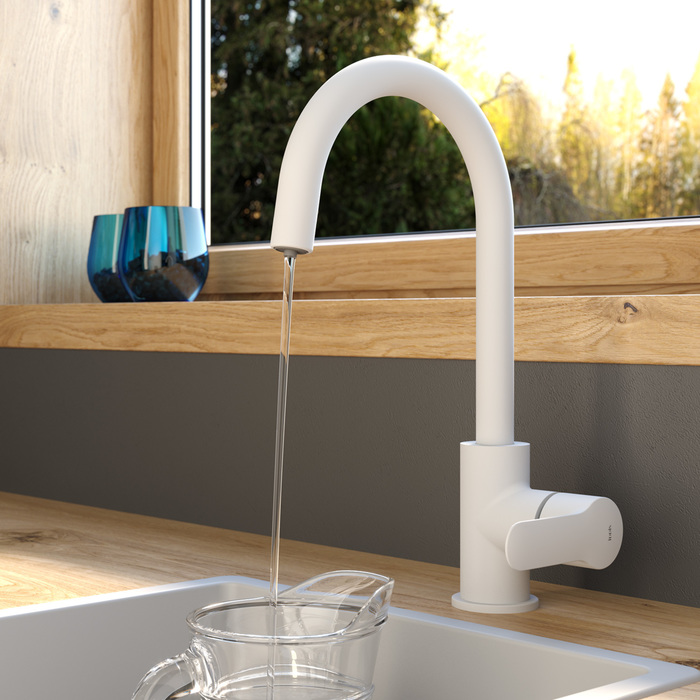 Смеситель для кухни IDDIS Cuba CUBWTFJi05 поворотный излив белый матовый