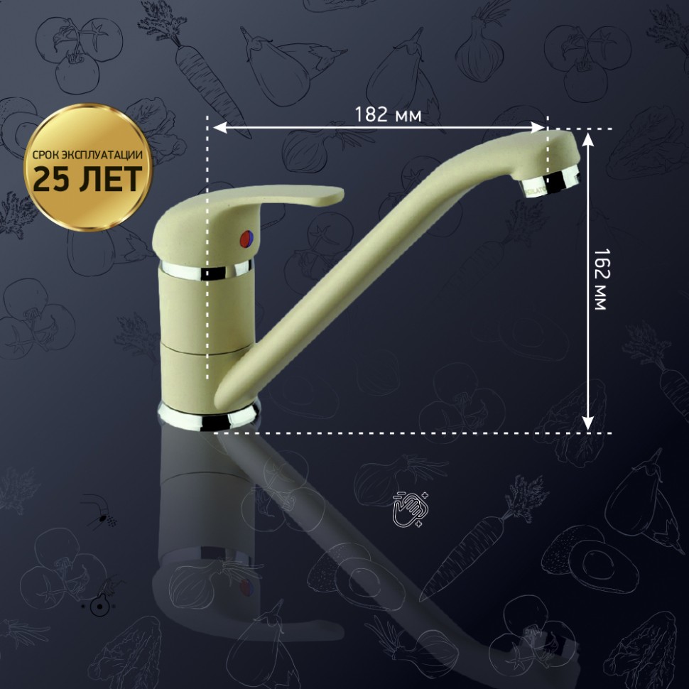 Смеситель для кухни Paini Jolly 6955573Z1KM поворотный излив бежевый матовый - купить в интернет-магазине Орегон с доставкой в регионы Крыма.