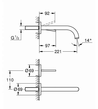 Длина излива, см 22.1
