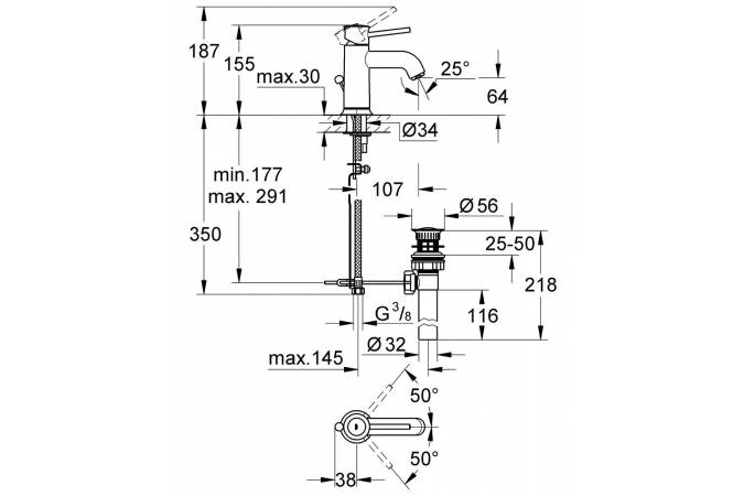 Смеситель для раковины GROHE BauClassic 23161000 хром - купить в интернет-магазине Орегон с доставкой в регионы Крыма.
