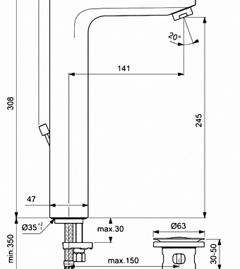 Длина излива, см 14.1