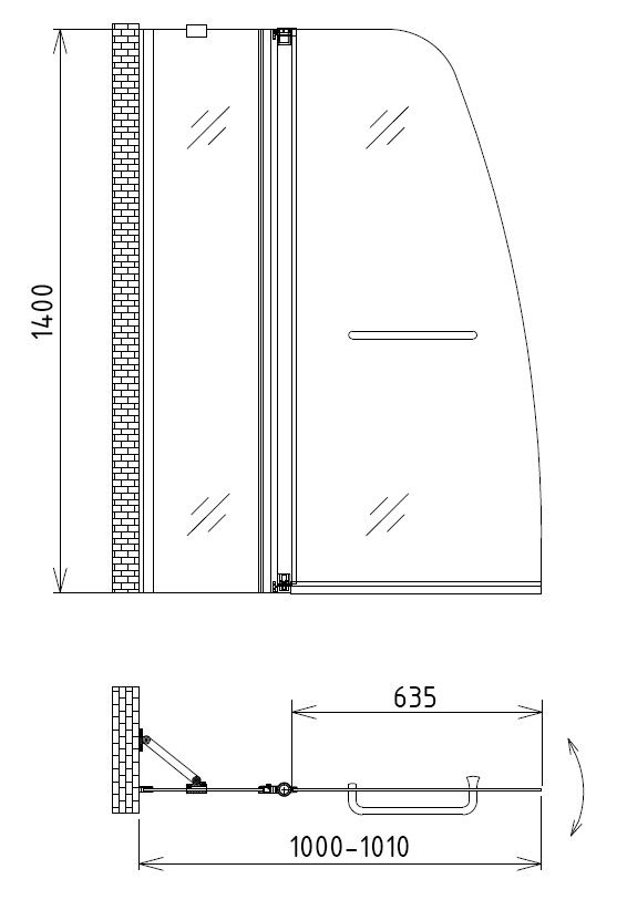 Стеклянная шторка на ванну Gemy Gemy New S03201 140х100см