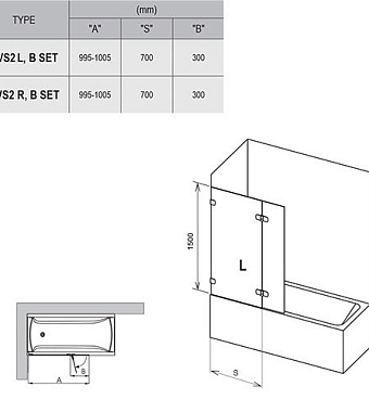 Стеклянная шторка на ванну RAVAK BVS2 7ULA0A00Z1 150х100см - купить в интернет-магазине Орегон с доставкой в регионы Крыма.