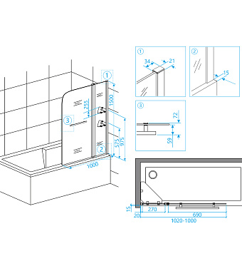 «Стеклянная шторка на ванну RGW Screens 03110810-11 SC-08 150х100см» в Ялте и Крыму