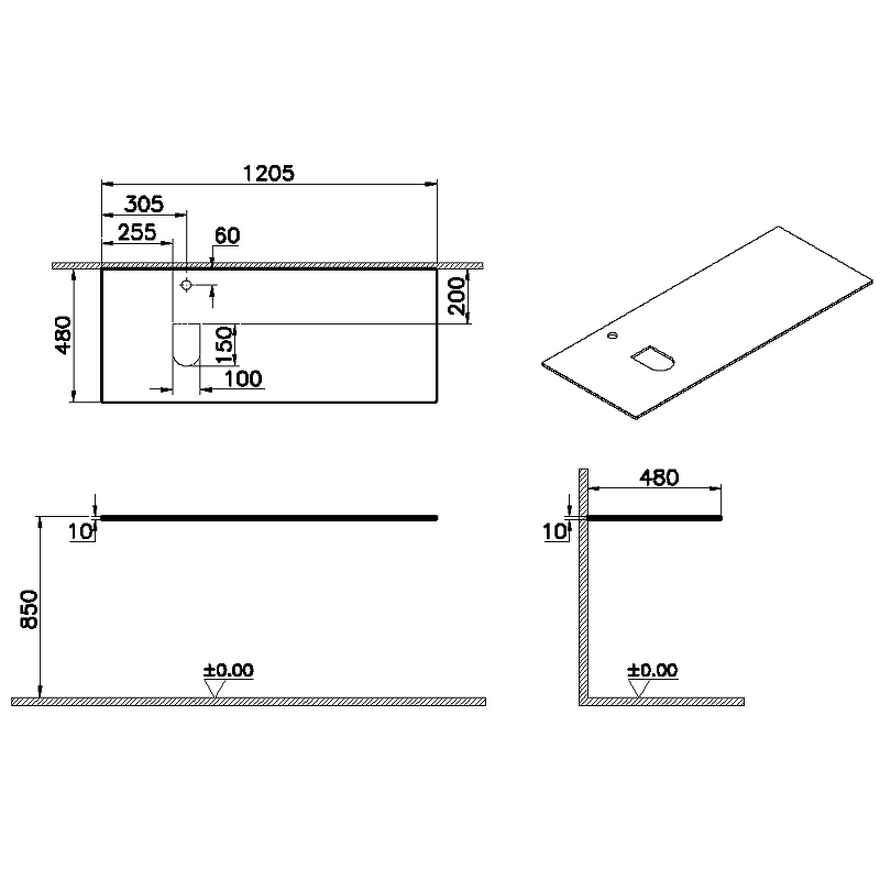 Столешница VITRA Origin 65725 Стекло 48х120,5см белый - купить в интернет-магазине Орегон с доставкой в регионы Крыма.