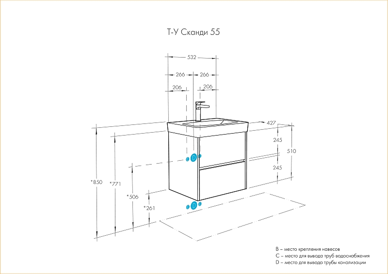 Тумба под раковину напольная Акватон Сканди 1A251701SDZ90 43х53,2х52,2см - купить в интернет-магазине Орегон с доставкой в регионы Крыма.
