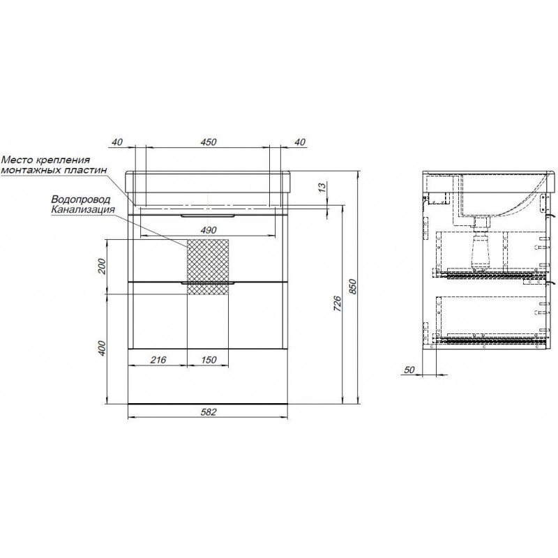 Тумба под раковину напольная AQUANET Ирис new 310144 48х60х65см - купить в интернет-магазине Орегон с доставкой в регионы Крыма.