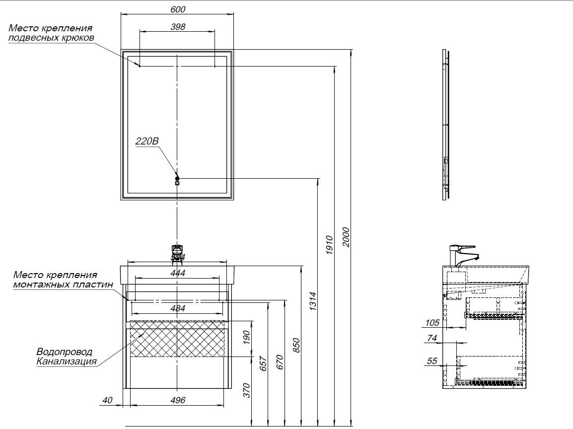 Монтаж Напольный~Подвесной