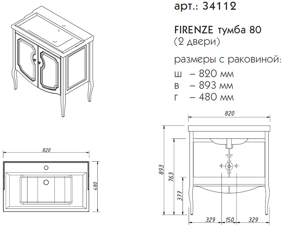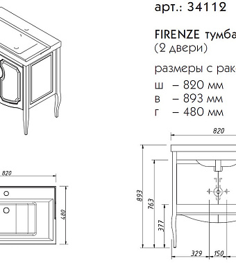 Тумба под раковину напольная CAPRIGO FIRENZE 34112-TK663 48х89,3х82см - купить в интернет-магазине Орегон с доставкой в регионы Крыма.