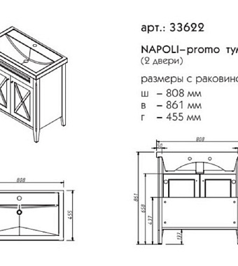Тумба под раковину напольная CAPRIGO NAPOLI PROMO 33622-B169 46х86,1х80,8см - купить в интернет-магазине Орегон с доставкой в регионы Крыма.