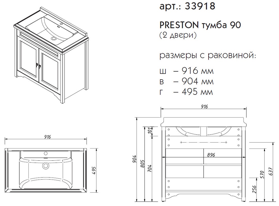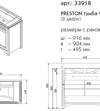 Тумба под раковину напольная CAPRIGO PRESTON 33918-TP814 50х90,4х91,6см - купить в интернет-магазине Орегон с доставкой в регионы Крыма.