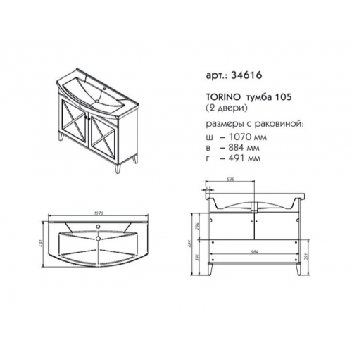 Тумба под раковину напольная CAPRIGO TORINO 34616-TP813 49х90,1х107см - купить в интернет-магазине Орегон с доставкой в регионы Крыма.