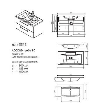 Тумба под раковину подвесная CAPRIGO ACCORD 2212-TP810 45х80х48,5см - купить в интернет-магазине Орегон с доставкой в регионы Крыма.