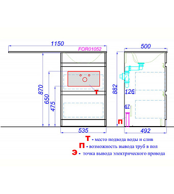 Тумба с раковиной AQWELLA FORMA FOR0105KL 50х115х88см - купить в интернет-магазине Орегон с доставкой в регионы Крыма.