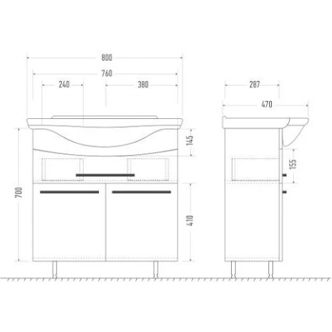 Тумба с раковиной MIRSANT Гляссе УТ000015840 29х80х70см