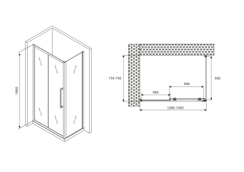 Угловое ограждение Abber Schwarzer Diamant AG30130H-S75 195х75см стекло прозрачное - купить в интернет-магазине Орегон с доставкой в регионы Крыма.