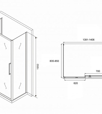 Угловое ограждение Abber Schwarzer Diamant AG30140MH-S85M-S85M 195х85см стекло матовое - купить в интернет-магазине Орегон с доставкой в регионы Крыма.